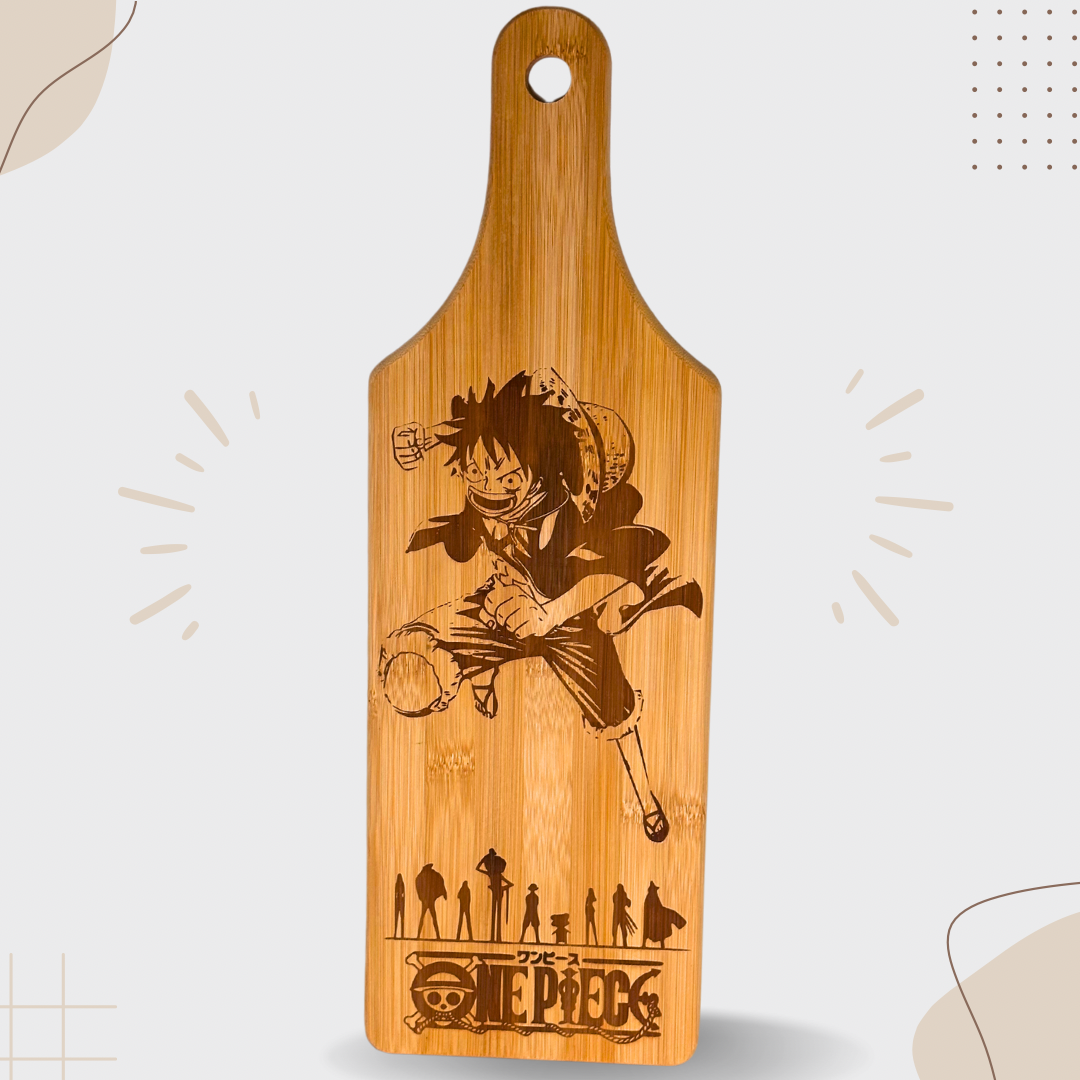 Introducing our "Monkey D. Luffy" Cutting Board, inspired by the epic adventures of Luffy and his crew in One Piece. Crafted from premium bamboo, this cutting board brings a dash of excitement and nostalgia to your kitchen. Laser-engraved with the iconic title "One Piece," it pays tribute to the legendary anime series. Due to the unique properties of wood, the engraving may exhibit a blend of light and dark tones, adding to its distinct charm. Each board is meticulously crafted to order, ensuring both quality and individuality. Enhance your culinary journey with this remarkable piece that infuses the adventurous spirit of One Piece into your home.
